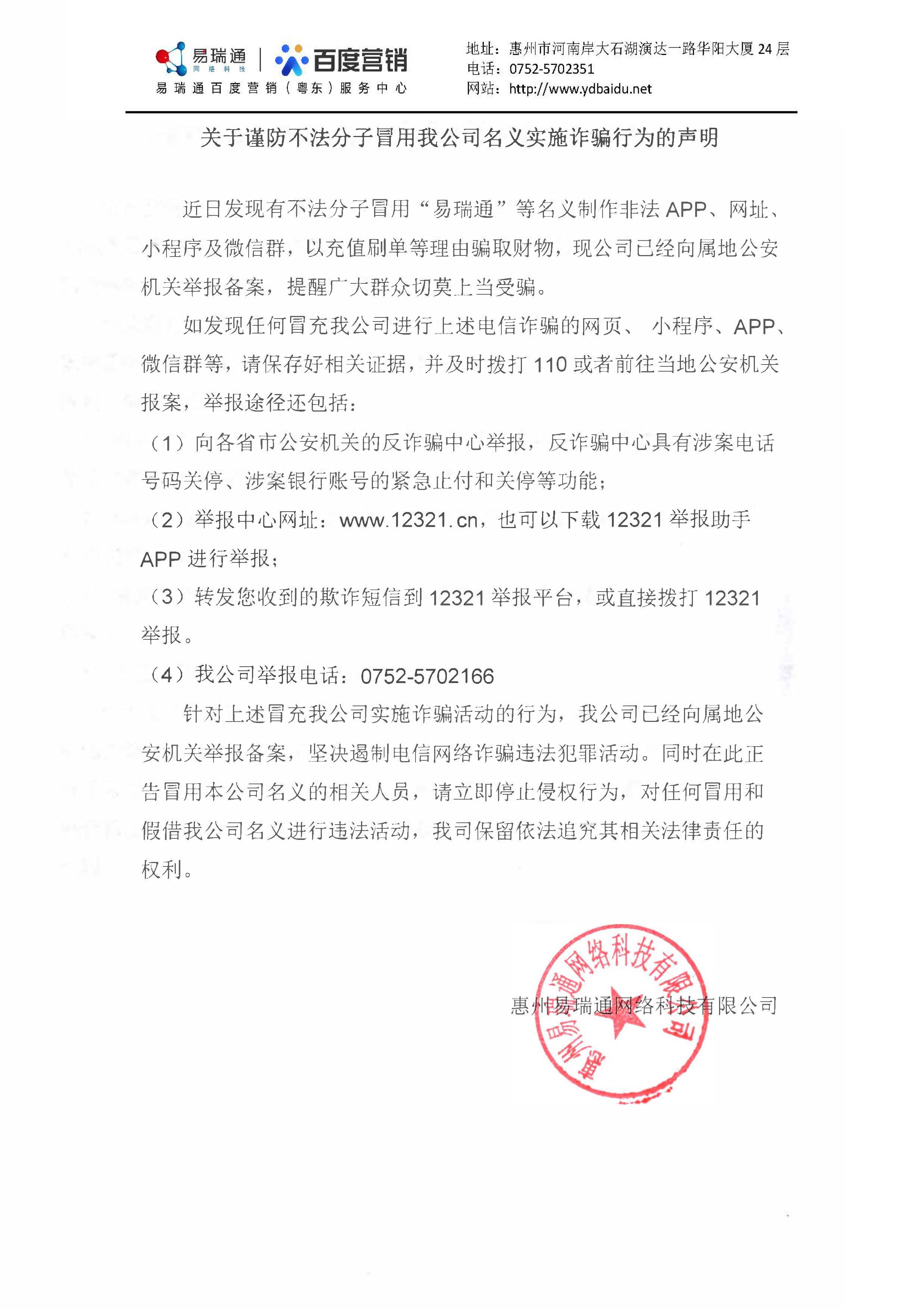 關(guān)于謹防不法分子冒用我司名義實施詐騙行為的聲明